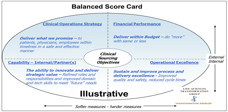 A sourcing/outsourcing strategy that includes a systematic analysis of which trials, processes, and technology can be outsourced and to what type of partners, and where, must be completed. This analysis, sometimes referred to as the Outsourceability Portfolio Analysis (OPA), incorporates business, people/skills, and technology requirements, along with the budget, cost saving needs, and, more importantly, business risks and mitigations.