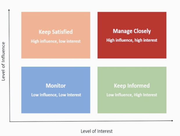 Figure 1. Project stakeholder communication framework based on relative influence and interest.