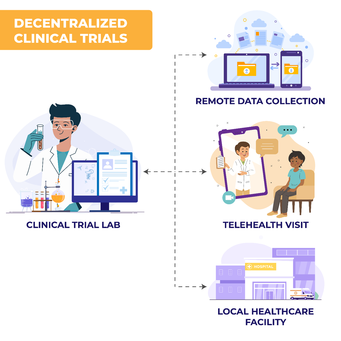 Decentralized clinical trials leverage digital health technologies (DHTs) and local healthcare systems to conduct trial activities outside traditional clinical settings. These activities may occur at participants' homes, local clinics, or through telehealth platforms.1,2 DCTs include remote data collection, digital health tools, and local healthcare provider involvement. This model contrasts with traditional site-based trials, offering flexibility through fully decentralized or hybrid approaches based on trial needs and participant preferences.3,4