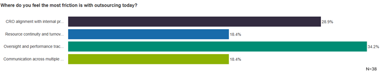 During the session’s live poll (see chart below), attendees overwhelmingly identified oversight and performance tracking as their greatest friction point. The panelists noted that these issues rarely stem from the model itself. Instead, they reflect unclear expectations, inconsistent governance, and reactive oversight structures that become visible only after problems surface. Many sponsors are now redefining performance metrics to align with embedded or hybrid structures, distinguishing between tactical oversight (task-level work) and strategic oversight (portfolio-level transparency).