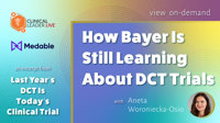 | How Bayer Is Still Learning About DCT Trials | Embedded Video | By Clinical Leader Live | In this segment from Last Year's DCT Is Today's Clinical Trial, we hear from distinguished guest Aneta Woroniecka-Osio on Bayer's adoption of DCT methodologies, noting that three out of four DCT-related trials have been conducted in a hybrid fashion. |