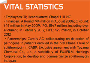 - October 2012: Obtained positive top-line results from solithromycin Phase 2 clinical trial in uncomplicated urogenital gonorrhea.