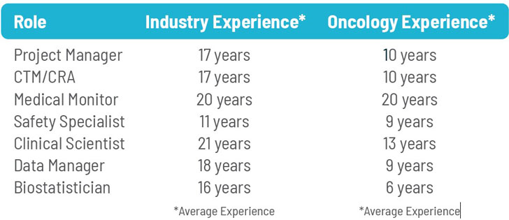 With a minimum requirement of 5+ years of oncology experience for key roles, our oncology niche guarantees you a seasoned team across all functions.