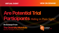 | Are potential trial participants hiding in plain sight? | Video | By Clinical Leader Live | Are there some pools of diverse patients — including disabled patients — that we as an industry tend to overlook, but that could be great for clinical trial recruiting? Garo Kiledjian of the SGM Alliance says yes, and he gives some examples. |