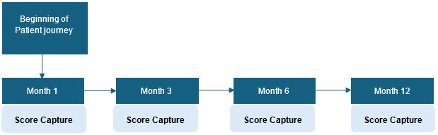 Because chronic diseases evolve continuously and treatment responses change over time, the below outcome trajectory tracks how a patient's health status evolves.