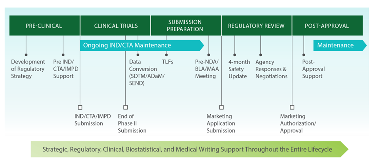 - Track FDA clinical, Non-clinical, and CMC development requirements from pre-IND through to marketing application and beyond