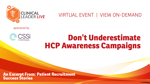 Video | Clinical Leader | How effective can HCP awareness campaigns be when trying to recruit patients for clinical trials? Jason Elenberger gives examples of these and other simple tactics that can go a long way when recruiting patients. |