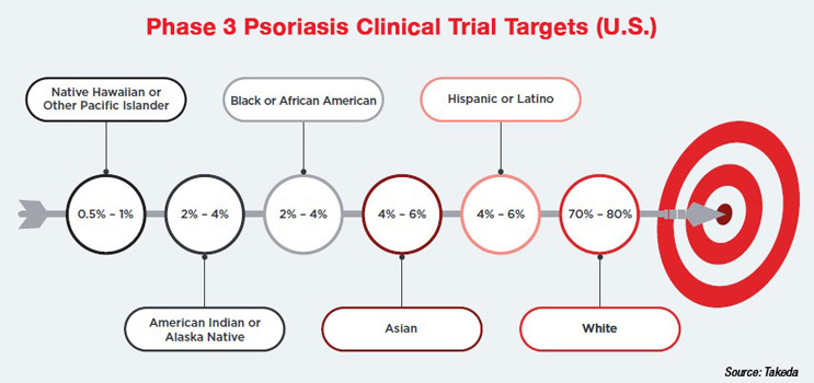 Takeda also recognizes the importance of partnerships with patient advocacy groups to amplify its diversity efforts. “For this trial, we did a podcast with the National Psoriasis Foundation where we explained our PAVE program step by step,” Robinson says. “We wanted to assure patients that we're really taking responsibility for setting this up for success. We are also meeting with other advocacy groups [she cannot reveal who at this time] globally to discuss best practices both of us have realized. One of those topics is the imagery being used for dermatological diseases. We are making sure we're elevating that one because it’s a huge issue.”