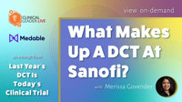 | | |  |  | What Makes Up A DCT At Sanofi? |  | Video | Clinical Leader Live |  | In this snippet, Merissa Govender, Global Innovation Leader at Sanofi explains how the company defines a DCT and what therapeutic areas they focus on for these kinds of trials. |