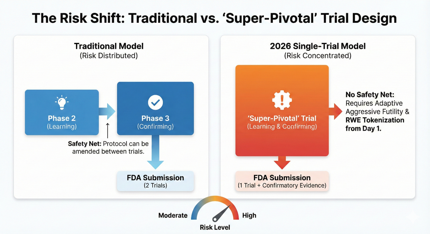 The move to a one-trial standard does not remove the burden of proof; it compresses it. When you remove the safety net of a second confirmatory study, the remaining trial must be operationally flawless. For clinical operations executives, 2026 will not be the year of easier trials. It will be the year of the "super-pivotal" study, a high-stakes operational environment where the margin for error effectively drops to zero.