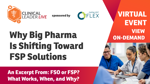 Samir Shah describes how large pharmaceutical companies are moving decisively toward FSP-derived models. He explains how AI investments, cost efficiency, and improved control over operations are driving a lasting structural shift — not a short-term trend — across the industry.