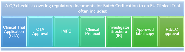 Figure 1: QP checklist covering regulatory documents for batch certification to an EU clinical trial