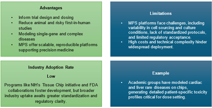 Advances in organ-on-chip and tissue chip models provide preclinical platforms for rare diseases, allowing efficacy and safety screening without relying solely on small patient pools.