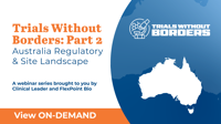 | Trials Without Borders: Regulatory & Site Landscapes | Virtual Event | Trials Without Borders | Experts Megan Robertson and Tina Soulis, Ph.D. discuss the regulatory and ethical landscape for conducting clinical trials in Australia. Topics covered include everything from CTA/IND submission processes and EC/IRB review timelines to ICH E6(R3) alignment and decentralized trial requirements. They also delve into the Australian site landscape. |