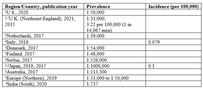 LHON’s prevalence varies between countries and regions, as reported from literature.