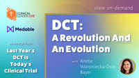 | DCT: A Revolution And An Evolution | Video | By Clinical Leader Live | Presenting a segment from the recent session Last Year's DCT Is Today's Clinical Trial, with esteemed guests: Merissa Govender, Global Innovation Leader at Sanofi; Lindsay Kehoe, Senior Project Manager at CTTI; and Aneta Woroniecka-Osio, DCT Strategy Development Lead at Bayer. Watch as Woroniecka-Osio talks about the criteria Bayer uses for determining if a trial incorporates DCT elements. |