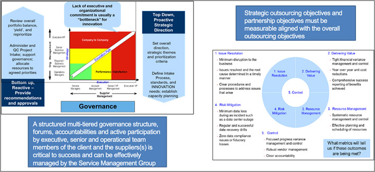 - Strategy and Process Controls: The SMG ensures that the oversight controls, standards, compliance requirements, and transformation objectives are aligned between the client and provider(s).